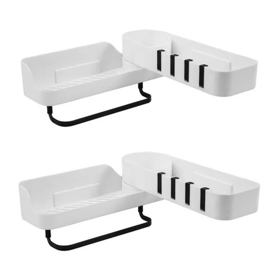 Rack esquinero de plástico para organizar tus artículos de baño. Medidas: 58 x 8 cm